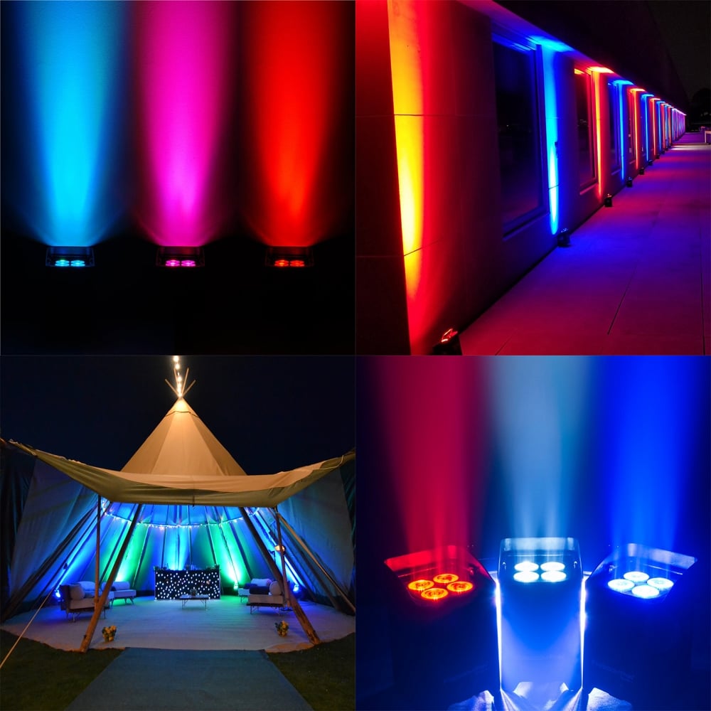Projecteur LEDs sur batterie équipé de 4 LEDs de 5W TRI RGBA
