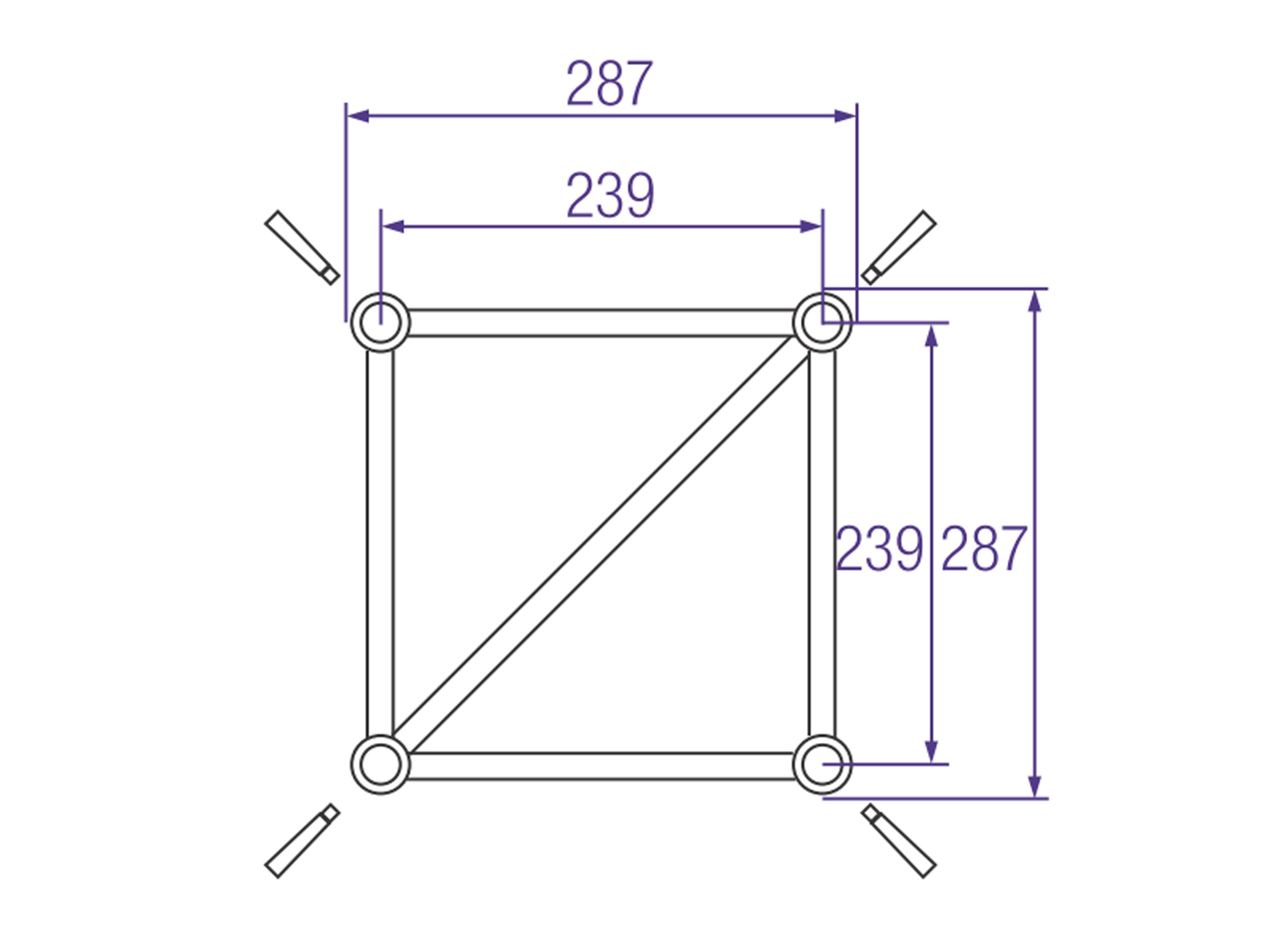 H30 Series truss is constructed of main tubes (48,3 x 3 mm) and diago­nals (16 x 2 mm). Equipped with the CCS6 conical coupling system, the H30 truss is fast and easy to assemble. The H30 truss can be found in rental fleets all over the globe, where its optimum strength and flexible application possibilities makes it well loved and much used. H30 truss is available in triangular and square profiles and a range of corners and accessories