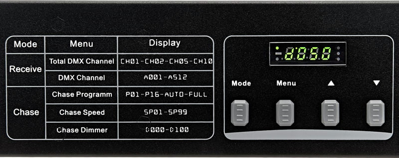 Contrôle : 16 programmes intégrés, contrôle sonore, maître / esclave, DMX