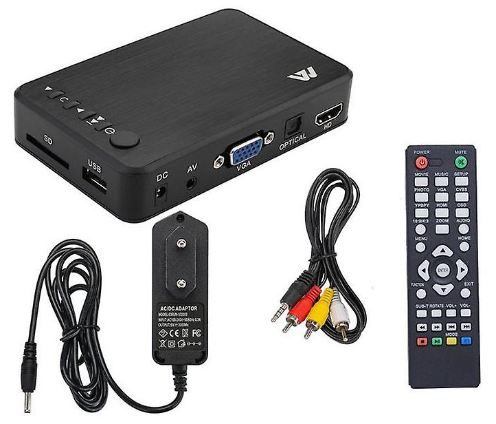 Lecteur de médias Full HD, sources USB/SD/MMC, sorties Analogique/HDMI